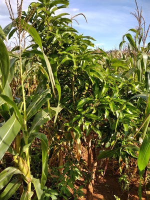 Two years have now passed and we can report with pleasure: The project was a complete success! The result is amazing. It is unbelievable to see how fast the acacia trees and the fruits like mango or bananas have grown. This could only come to fruition because of the weekly watering by the community. Without them, the trees would not have survived the dry season. While in 2019 the plot consisted almost only of red soil and only the first leaves of the planted trees were seen, today the trees are already 1-1.5 meters high